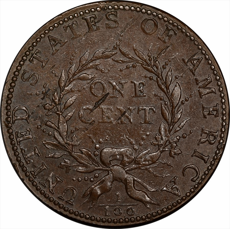 | Category: | COPPER-LARGE CENTS-FLOWING HAIR, WREATH |