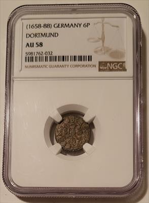 Germany - States Era, Dortmund (1658-88) 6 Pfennig. Silver. Graded About Uncirculated 58 by NGC. Toned. Top Pop.