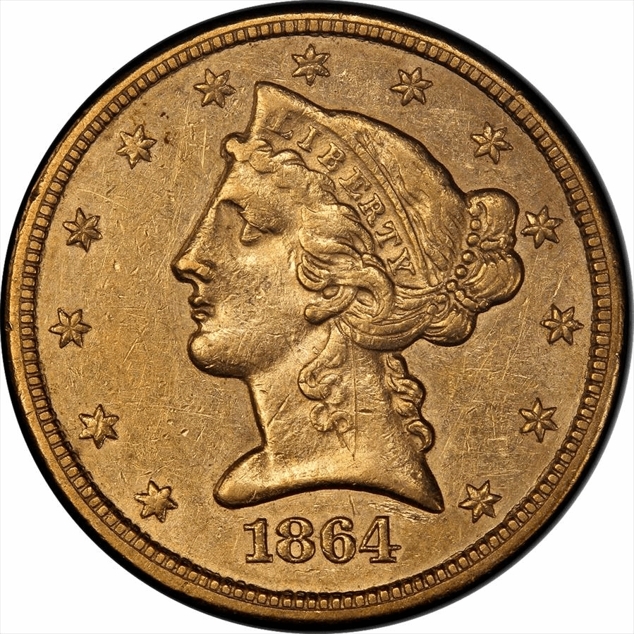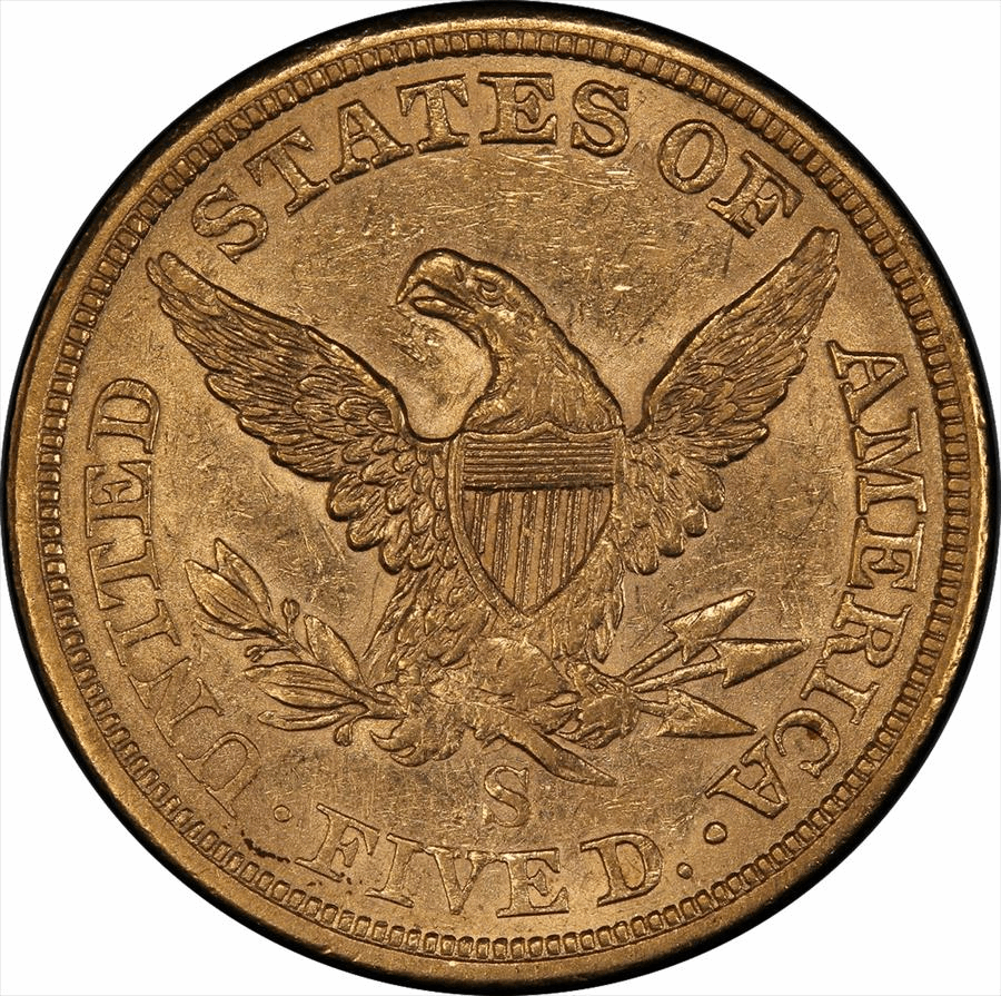 CHOICE EVENLY WORN EXAMPLE OF THIS RARITY. ONLY 20 TO 30 KNOWN TO EXIST TODAY IN ALL GRADES. A KEY DATE TO THE LIBERTY HALF EAGLE SET. JUST A SINGLE COIN GRADED MINT STATE.