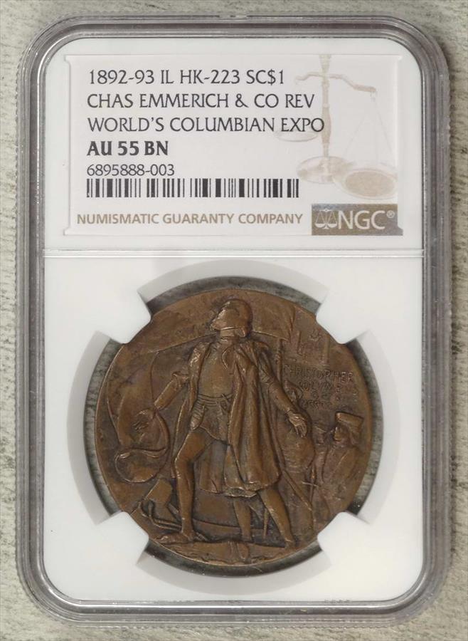 HK-223, St. Gaudens Dollar, CHAS Emmerich, 1893 Columbian Expo, Rare