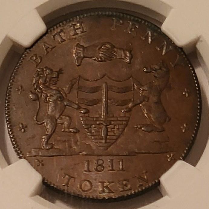 Great Britain 1811 Penny Token Bath - Whitchurch & Dore W-15a MS62 BN NGC