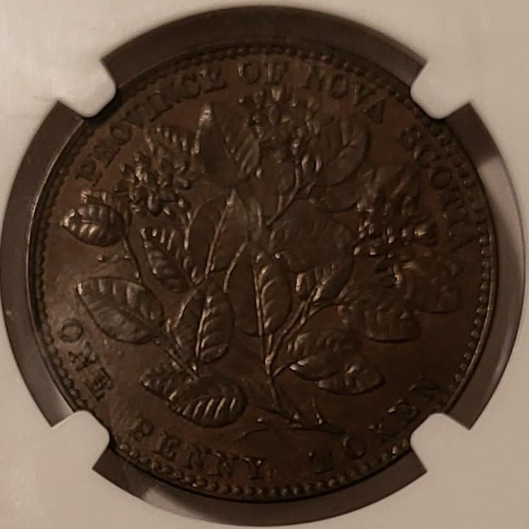 Canada Nova Scotia Victoria 1856 Penny Token NS-6A1 with LWC AU58 BN NGC
