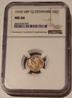 Denmark Frederik VIII 1910 VBP GJ Silver 10 Ore MS66 NGC