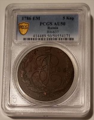 Russia Catherine II The Great 1786 EM 5 Kopeks AU50 PCGS