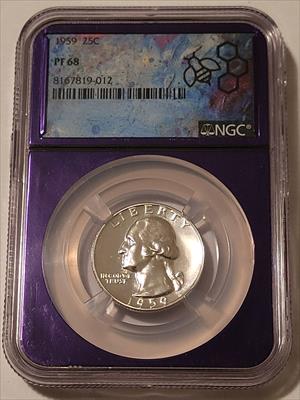 1959 Washington Quarter Proof PF68 NGC Purple Bee Label