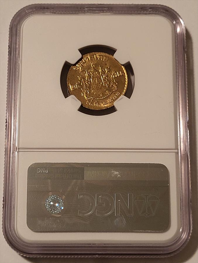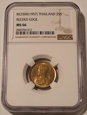 Thailand Rama IX BE2500 (AD 1957) 25 Satang. Aluminum-Bronze, Reeded Edge. Graded Mint State 66 by NGC.