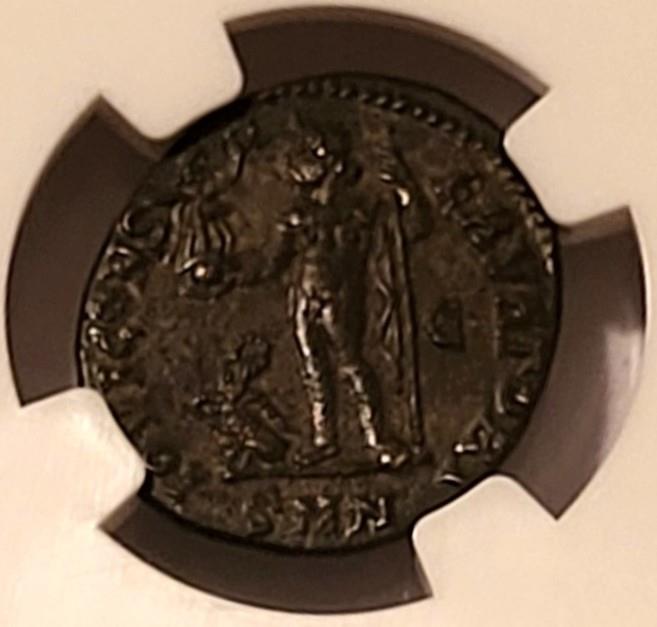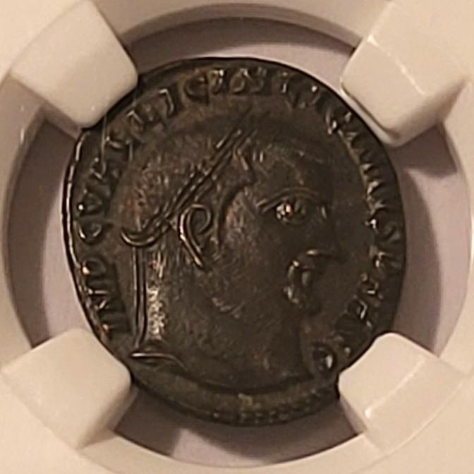 Roman Empire Licinius I AD 308-324 Reduced Nummus. Billon. Nicomedia Mint. Reverse: Jupiter standing. Graded About Uncirculated by NGC.