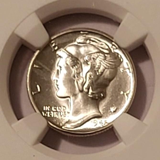 1945 D Mercury Dime MS66+ FB NGC