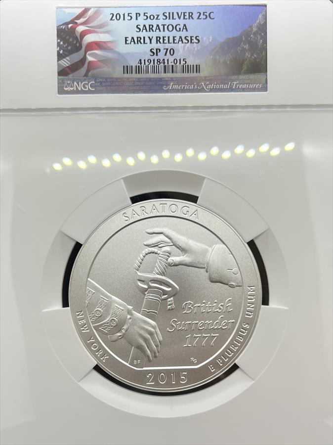 2015 5oz America the Beautiful Saratoga SP70 NGC Early Release