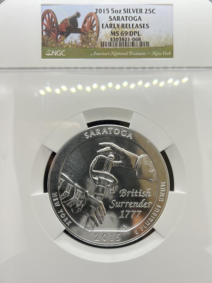 2015 5oz America the Beautiful Saratoga MS69DPL NGC Early Release