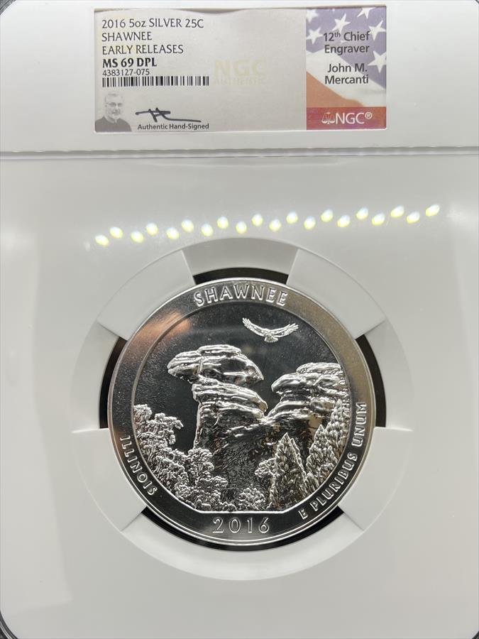 2016 5oz America the Beautiful Shawnee MS69DPL NGC Mercanti Signed