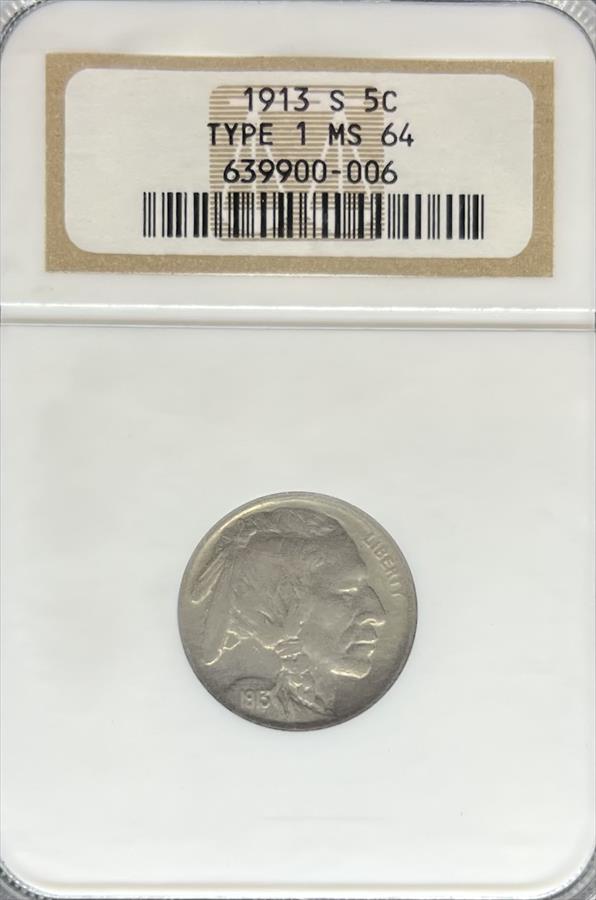 1913-S T1 Buffalo Nickel MS64 NGC