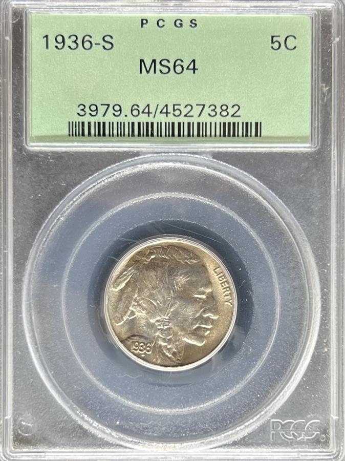 1936-S Buffalo Nickel MS64 PCGS OGH