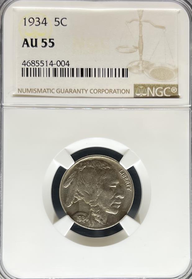 1934 Buffalo Nickel AU55 NGC