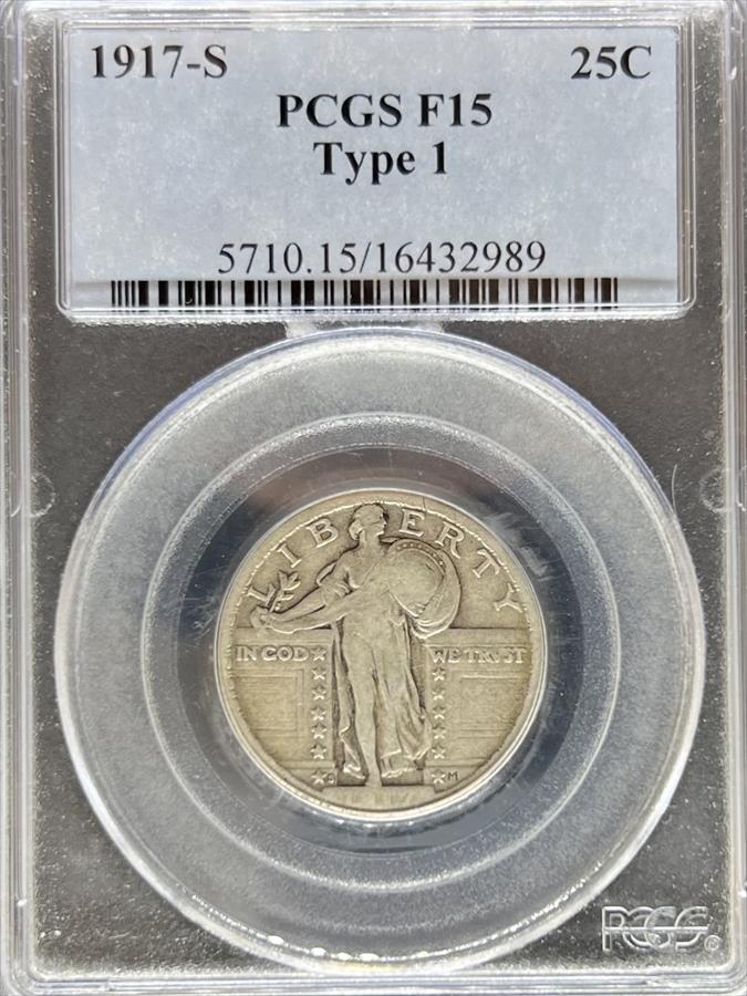 1917-S T2 Standing Liberty Quarter F15 PCGS