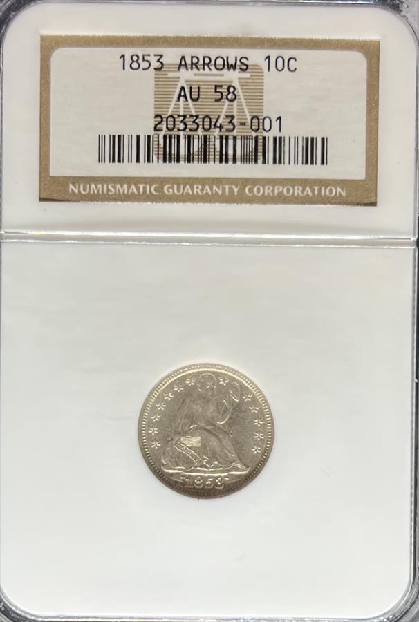 1853 Liberty Seated Dime AU58 NGC Arrows