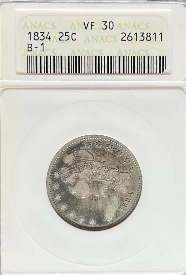 1834 Capped Bust Quarter VF30 ANACS
