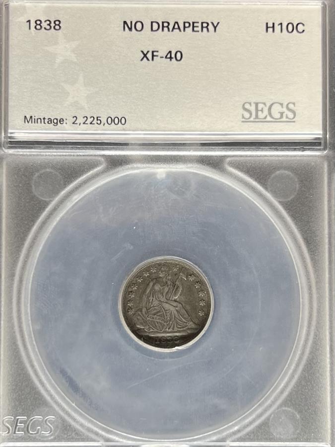 1838 Liberty Seated Half Dime XF40 SEGS No Drapery