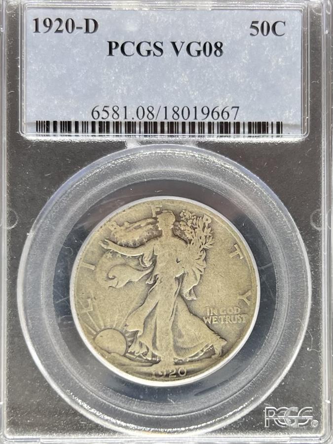 1920-D Walking Liberty Half Dollar VG8 PCGS