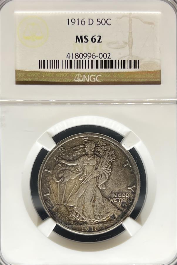 1916-D Walking Liberty Half Dollar MS62 NGC