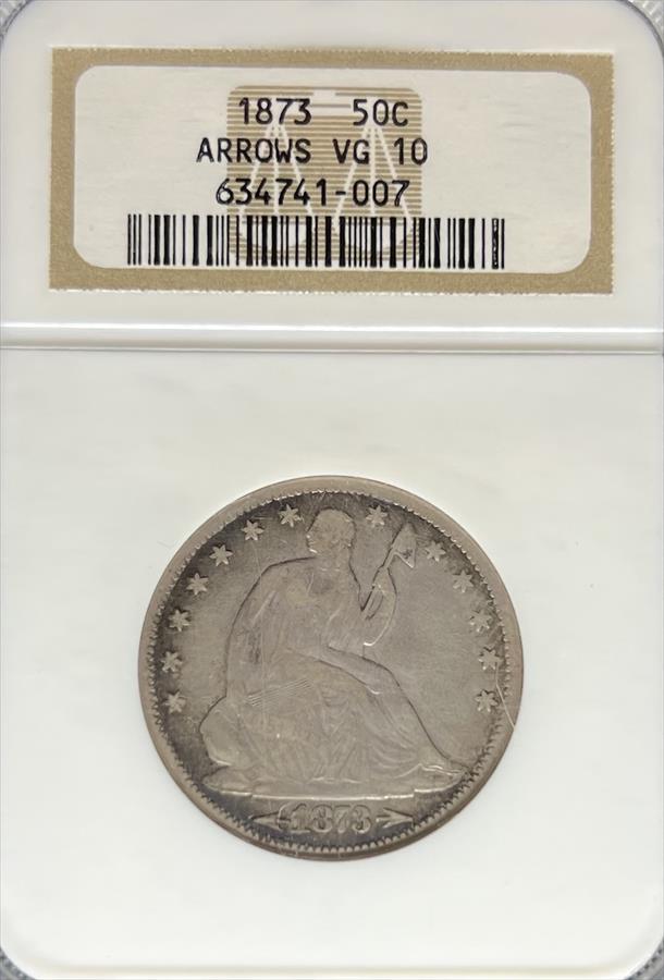 1873 Liberty Seated Half Dollar VG10 NGC Arrows
