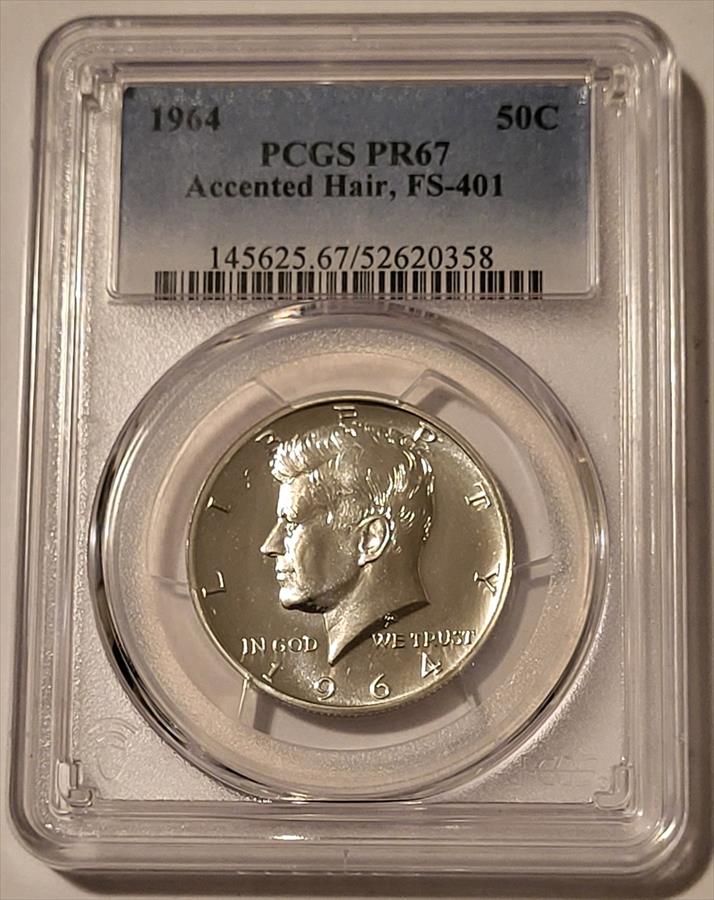 1964 Kennedy Silver Half Dollar Accented Hair FS-401 Proof PR67 PCGS