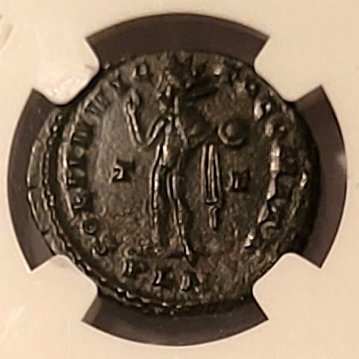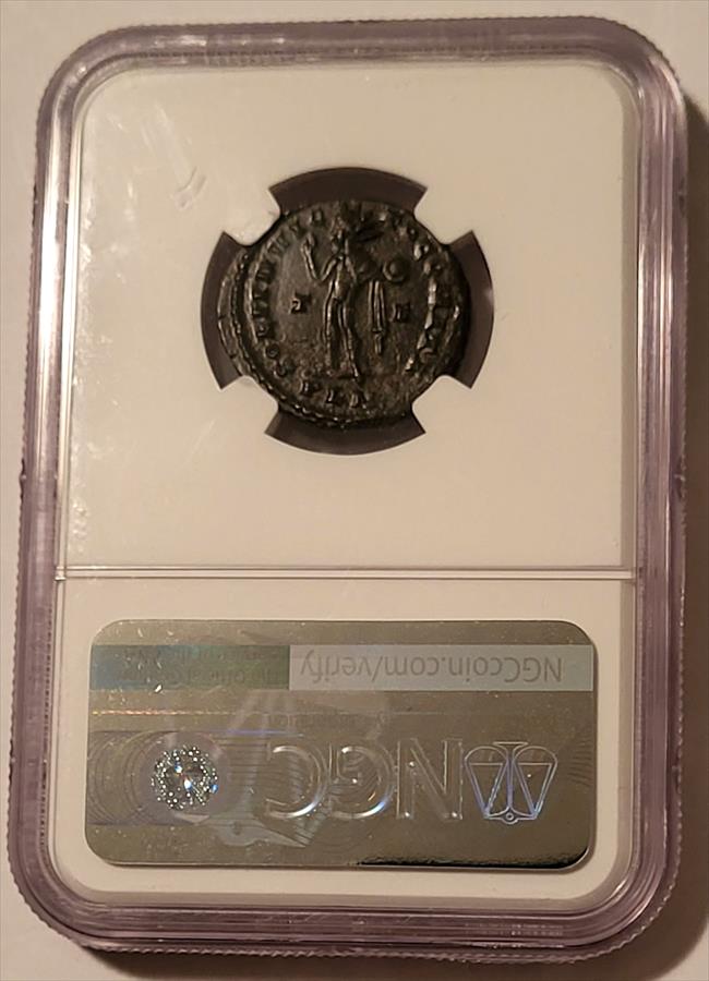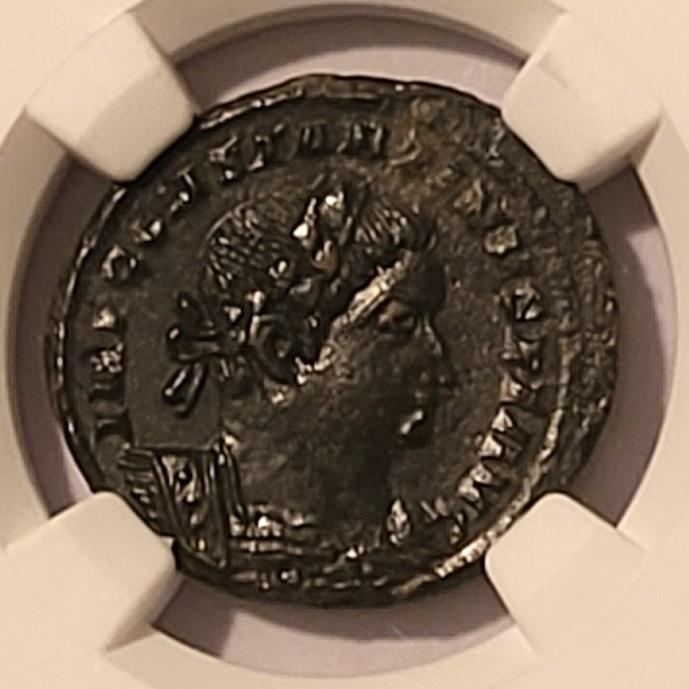 Roman Empire Constantine I (emperor, AD 307-337) Reduced Nummus. Billon. Graded About Uncirculated by NGC.