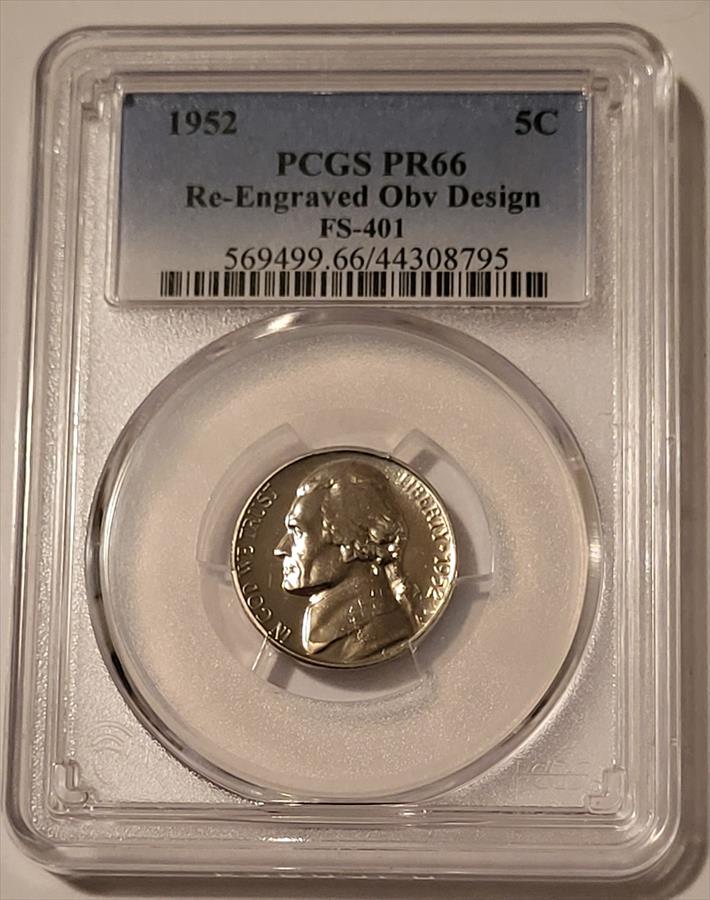 1952 Jefferson Nickel. Philadelphia Mint. Copper-Nickel. Re-Engraved Obverse Design Variety, FS-401. Graded Proof-66 by PCGS.