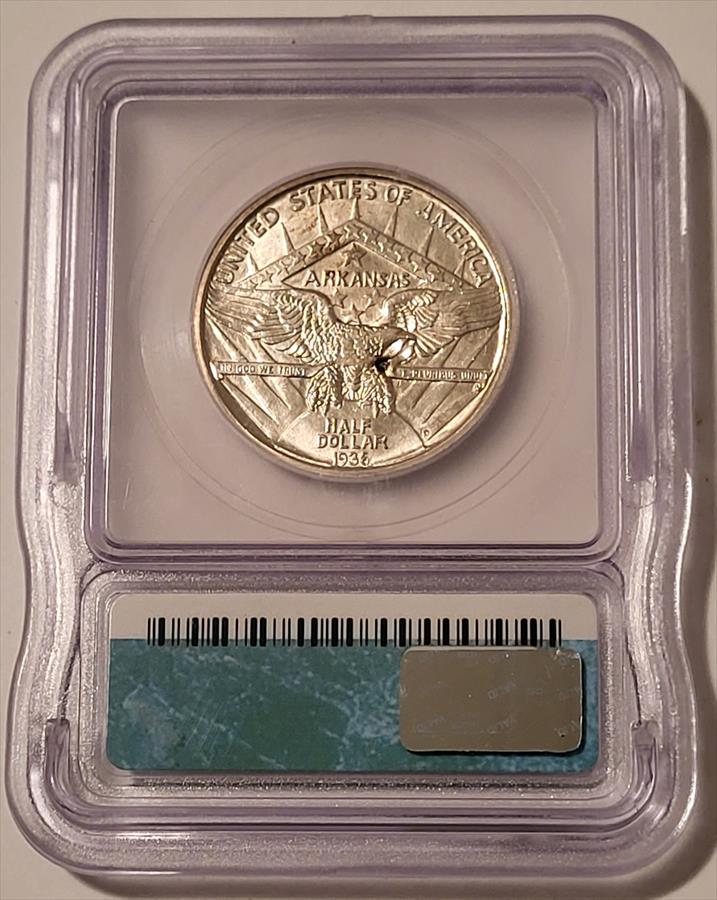 1936 D Arkansas Centennial Commemorative Silver Half Dollar MS63 ICG