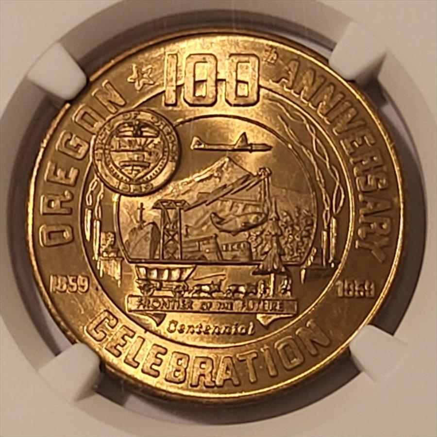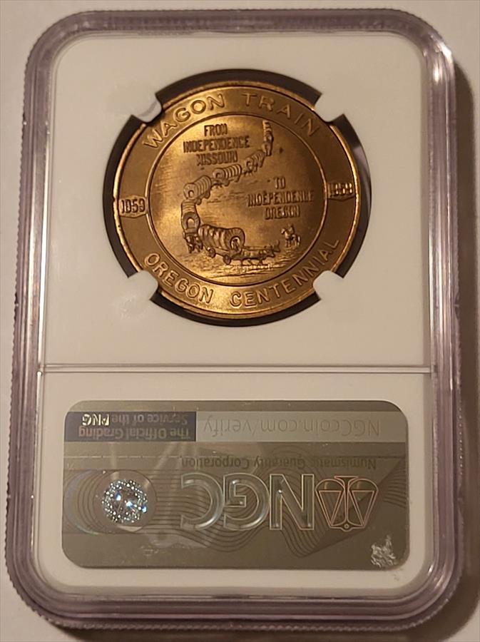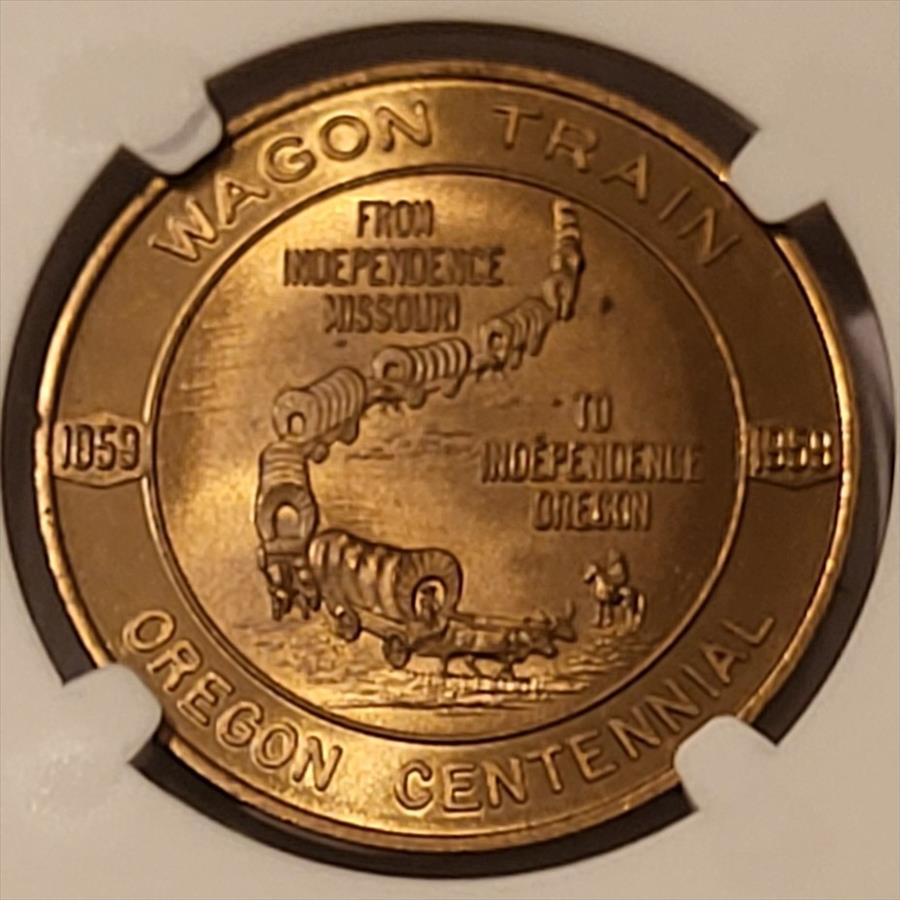 1959 Oregon Statehood Centennial So-Called Dollar Medal Independence Wagon Train HK-559 R2 MS67 NGC