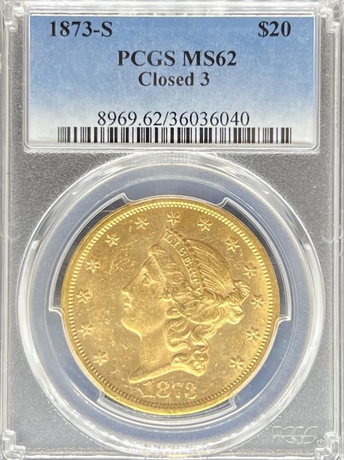 1873-S Closed 3 $20 Liberty MS62 PCGS
