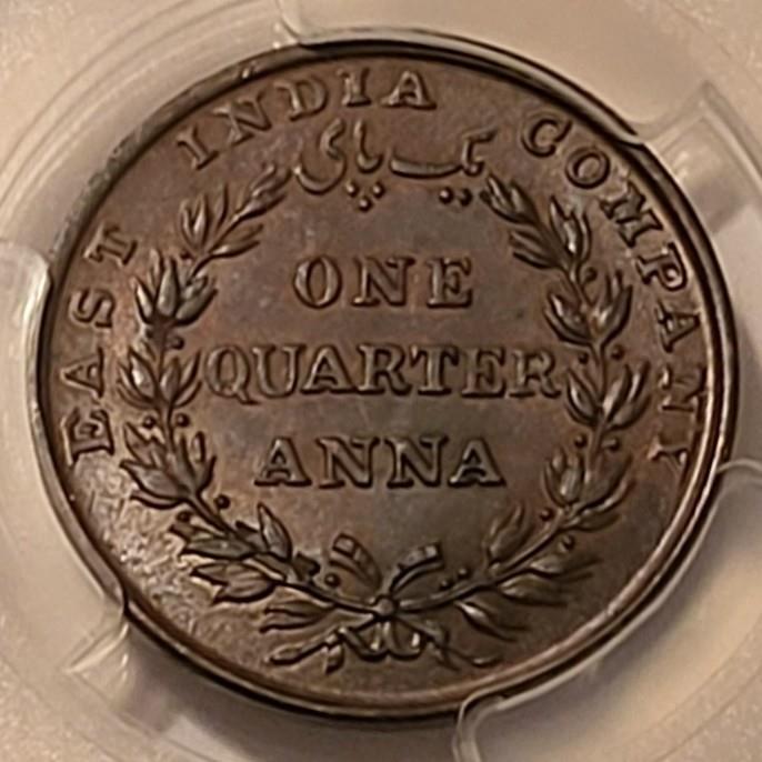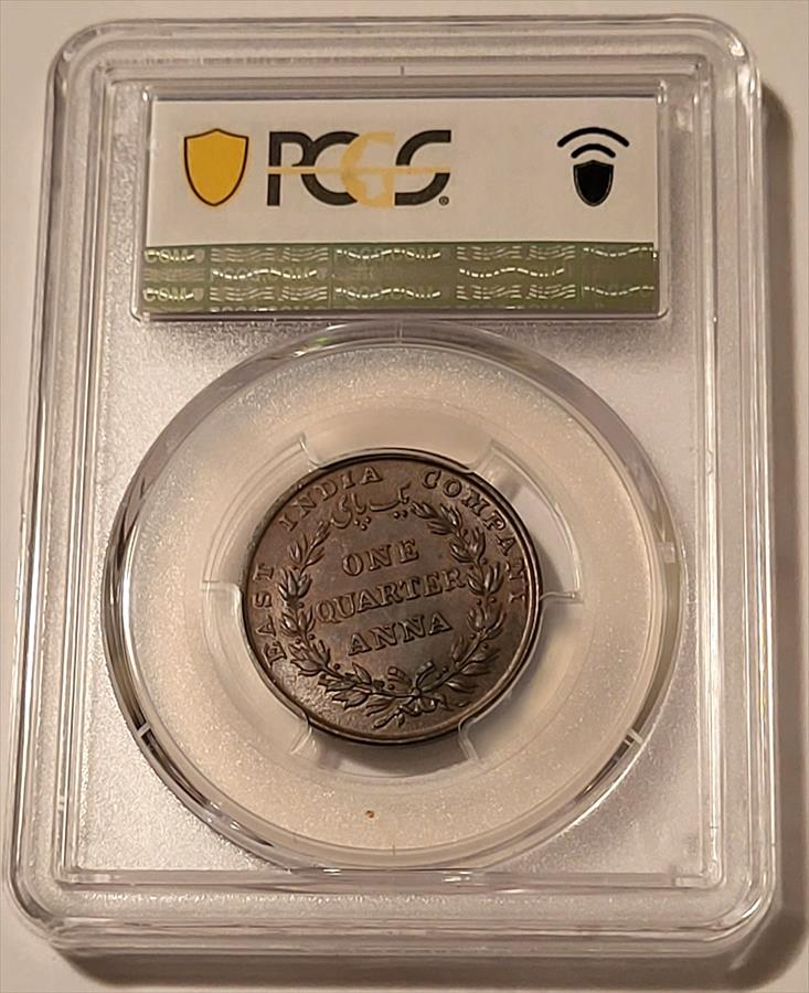 India - British - 1835 (C) 1/4 Anna MS63 BN PCGS GSH