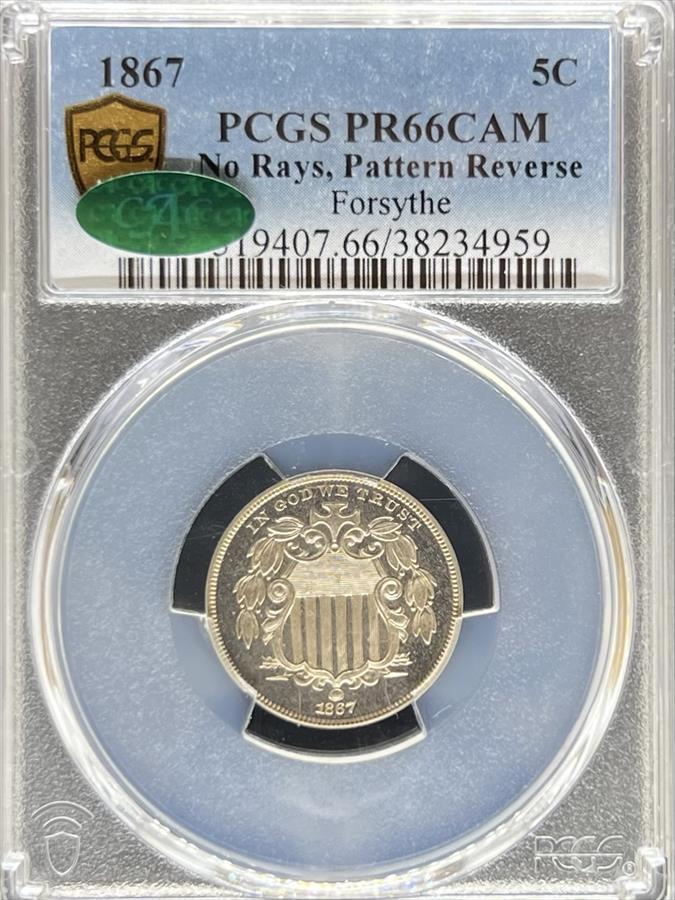 1867 No Rays Shield Nickel Pattern Revere PR66CAM PCGS AMC