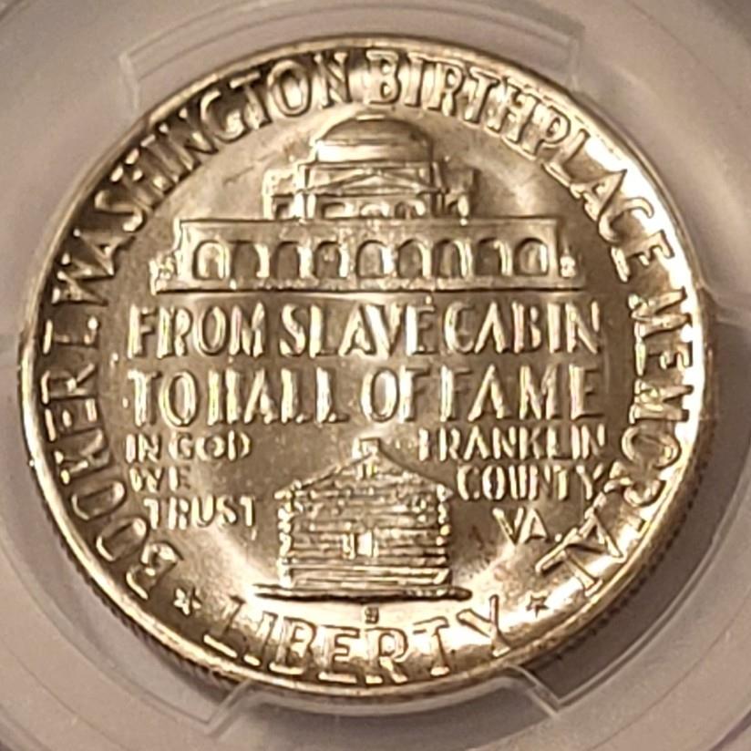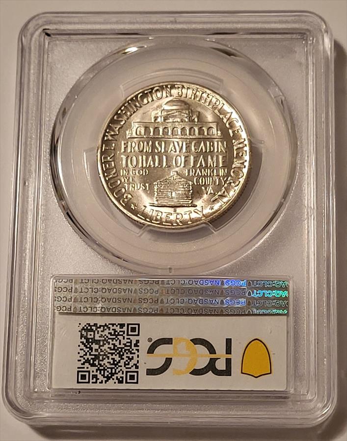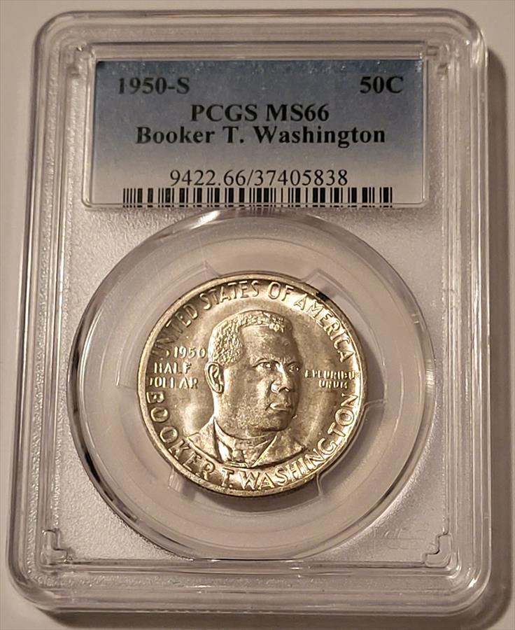 1950 S Booker T. Washington Commemorative Silver Half Dollar. Graded Mint State 66 by PCGS. Areas of toning.