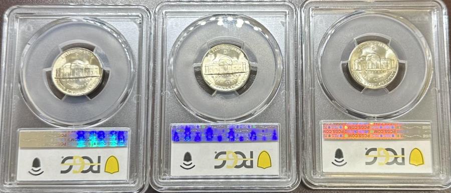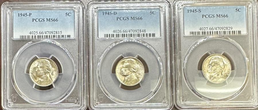1945-P/D/S Jefferson Nickel 3pc Set MS66 PCGS