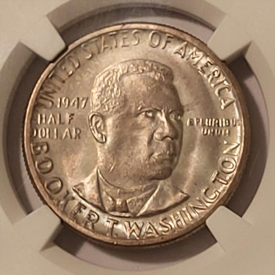 1947 Booker T Washington Commemorative Silver Half Dollar MS65 NGC Toning