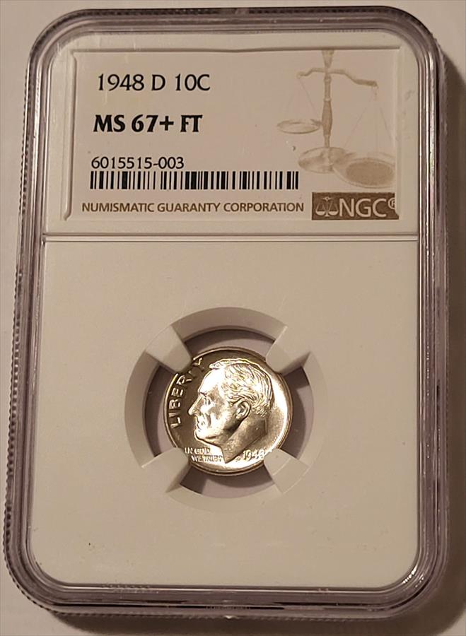 1948 D Roosevelt Dime MS67+ FT NGC
