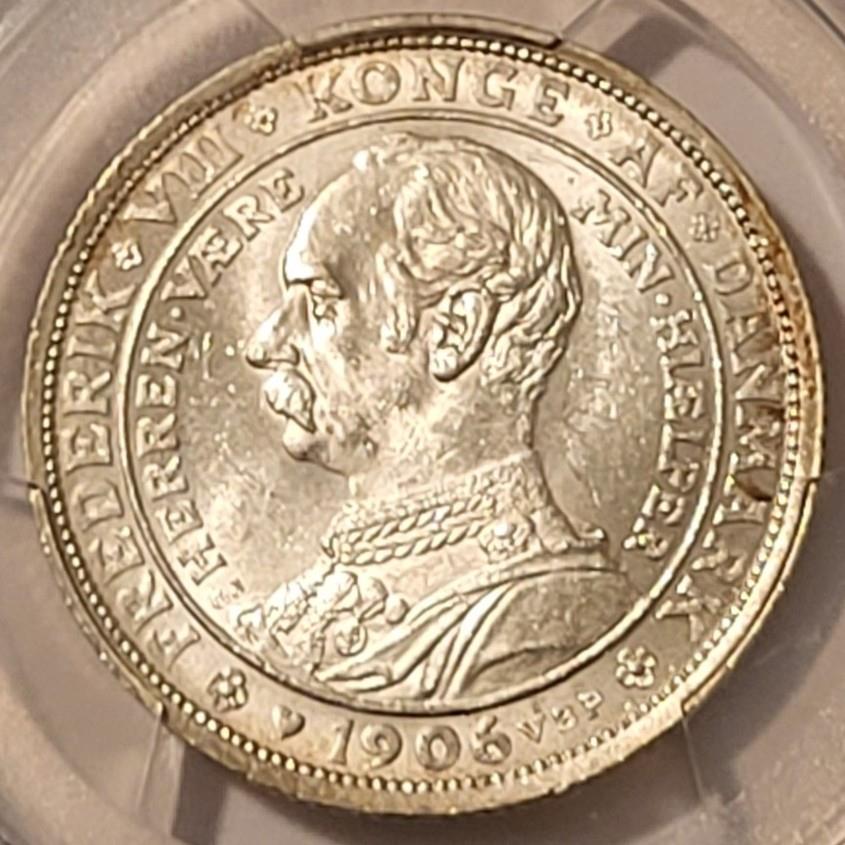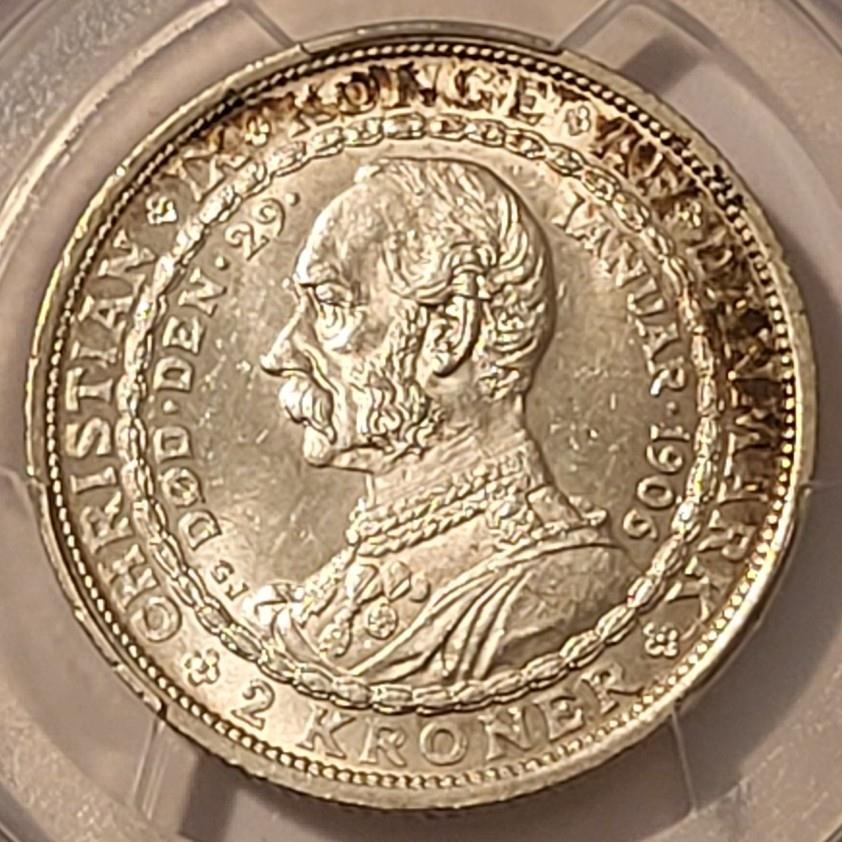 Denmark 1906 VBP GJ Silver 2 Kroner Death of Christian IX MS64 PCGS GSH