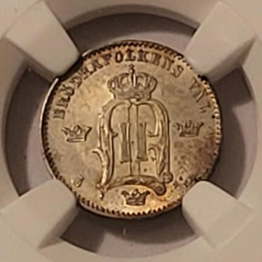 Sweden Oscar II 1887 EM Silver 10 Ore MS64 NGC