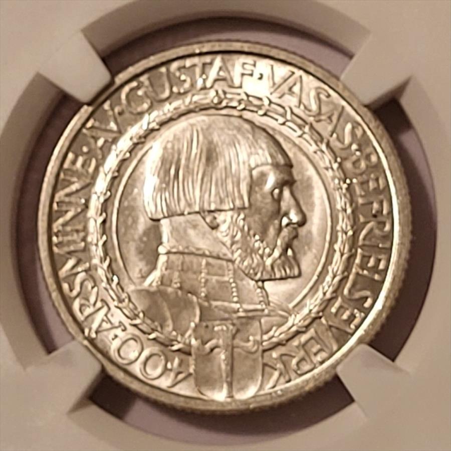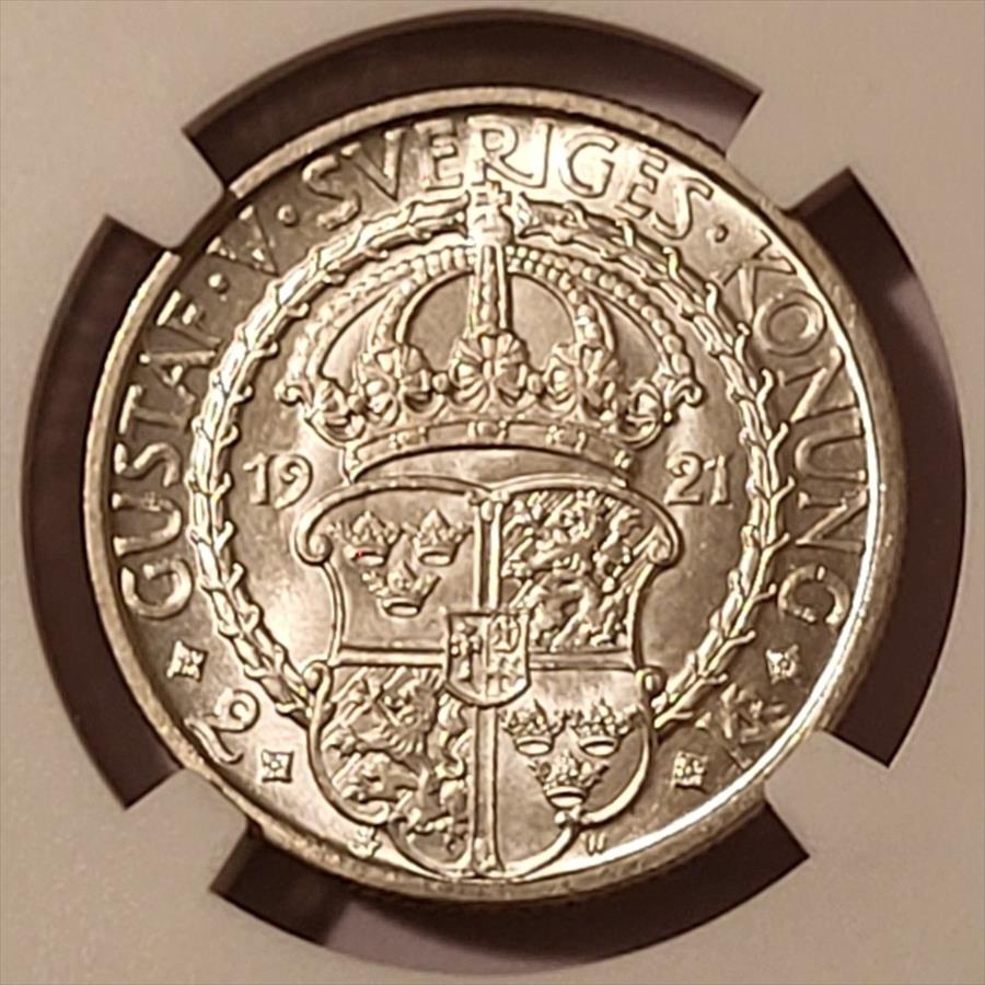 Sweden Gustaf V 1921 W 2 Kronor. Silver. Political Liberty - 400th Anniversary. Graded Mint State 65 by NGC.