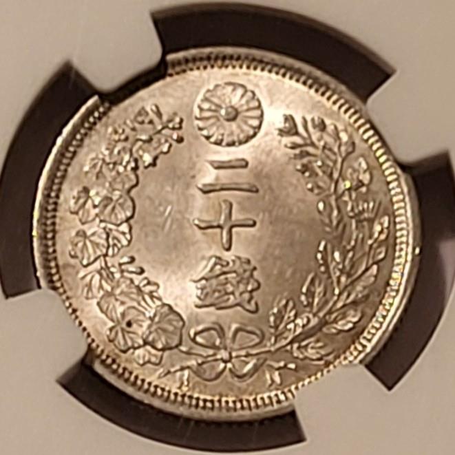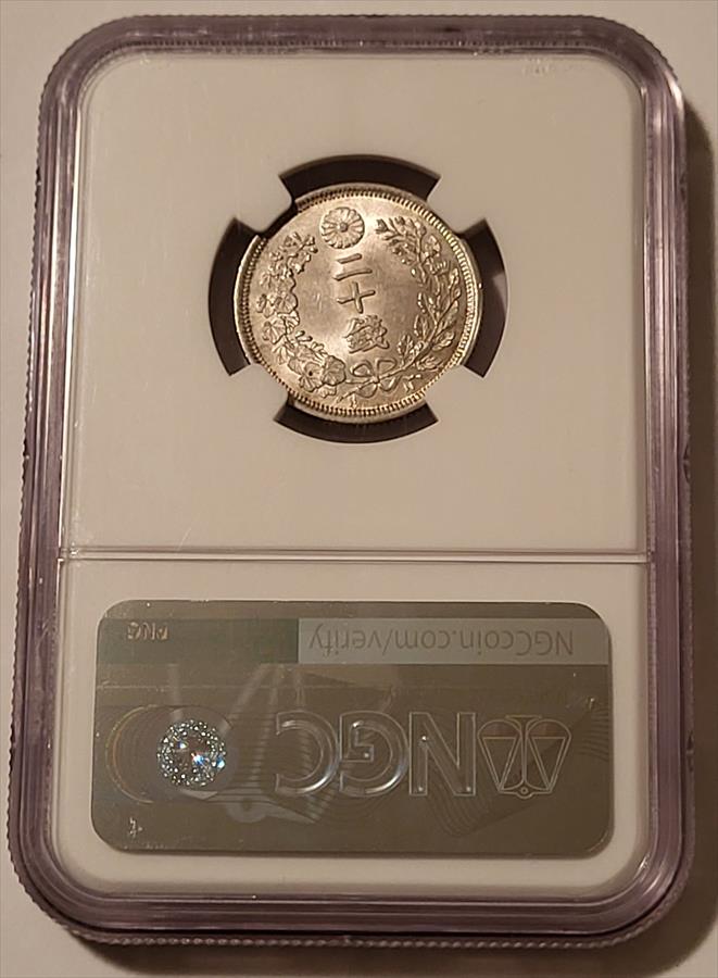 Japan Meiji Era 1874 Silver 20 Sen MS64 NGC
