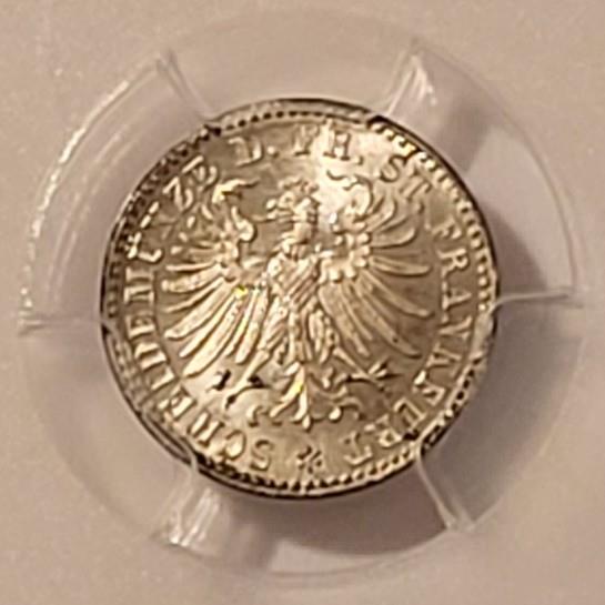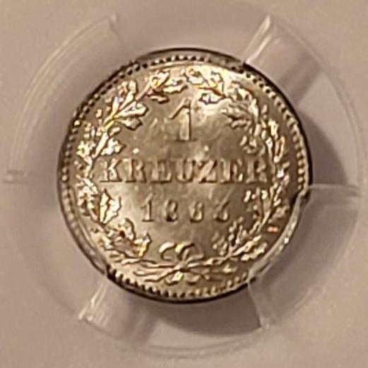 51010819 | German States Era - Frankfurt Am Main 1863 Kreuzer. Silver. Graded Mint State 65 by PCGS - Gold Shield Holder.