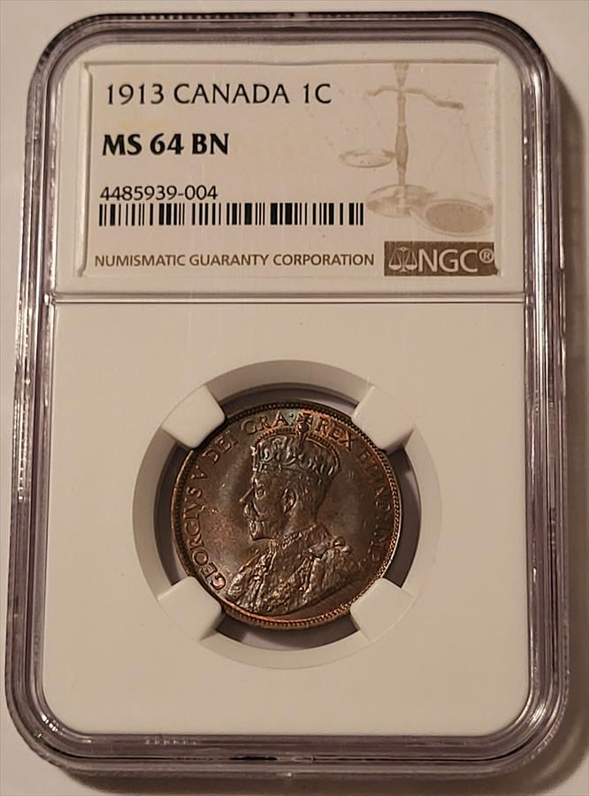 Canada George V 1913 Large Cent MS64 BN NGC