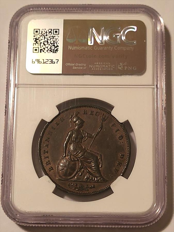 Great Britain Victoria 1853 Penny Ornamental Trident AU55 BN NGC