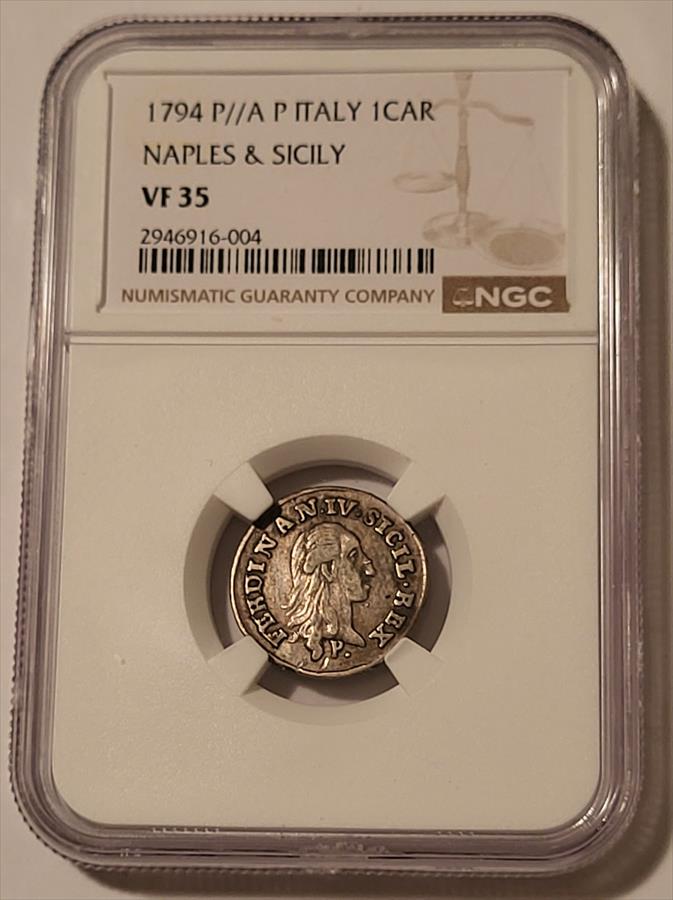 Italian States - Naples & Siciily Ferdinando IV 1794 P// A P 10 Grana (1 Carlino). Graded Very Fine 35 by NGC. Top Pop.