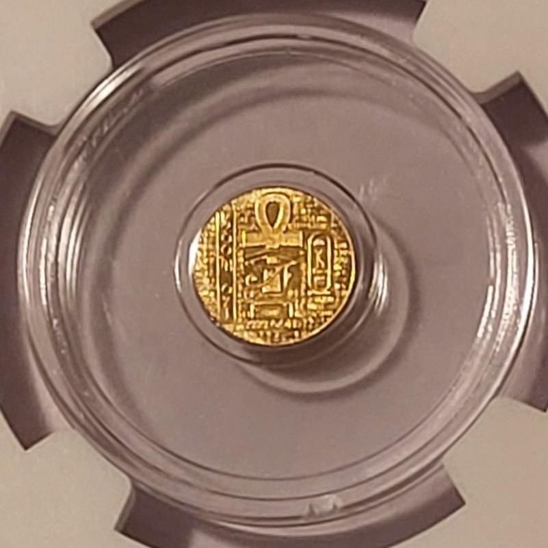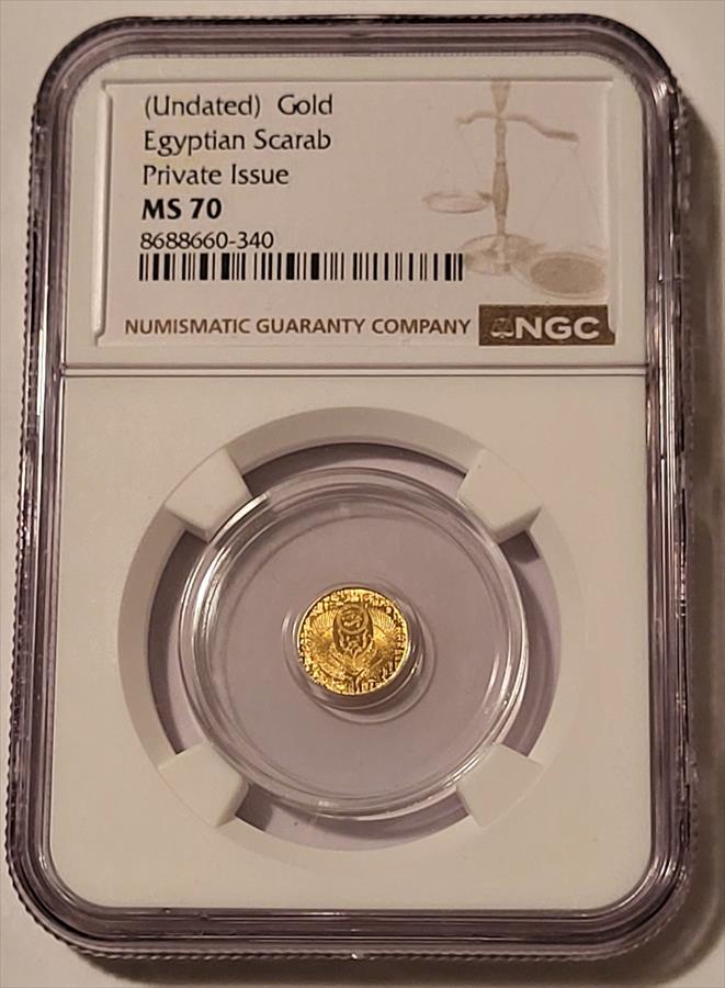 Egyptian Scarab Undated Gold Token. 1/200 oz, .9999 fine. U.S. Private Issue. Graded Mint State 70 by NGC.