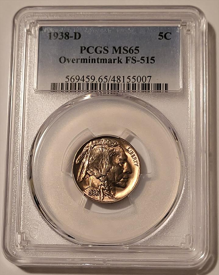 1938 D Buffalo Nickel Overmintmark FS-515 MS65 PCGS Toning