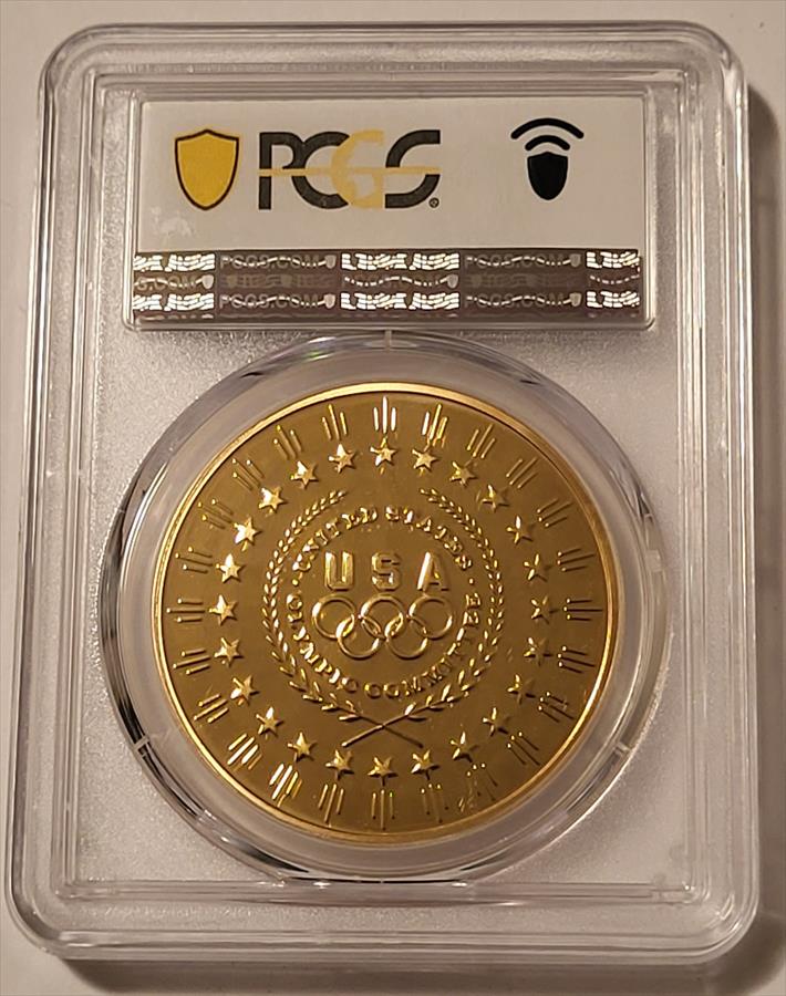 2008 USA Beijing Olympics Medal. Gilt AE. Colorized. Graded Proof-70 Deep Cameo by PCGS. Top Pop 1/0.
