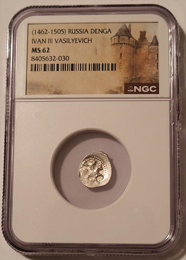Russia Ivan III Vasilyevich (1462-1505) Silver Denga MS62 NGC