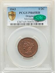 1843 BRAIDED HAIR 1/2C | 1843 | $19,250.00 | PR 65 | Rare Coin Wholesalers | Yes |